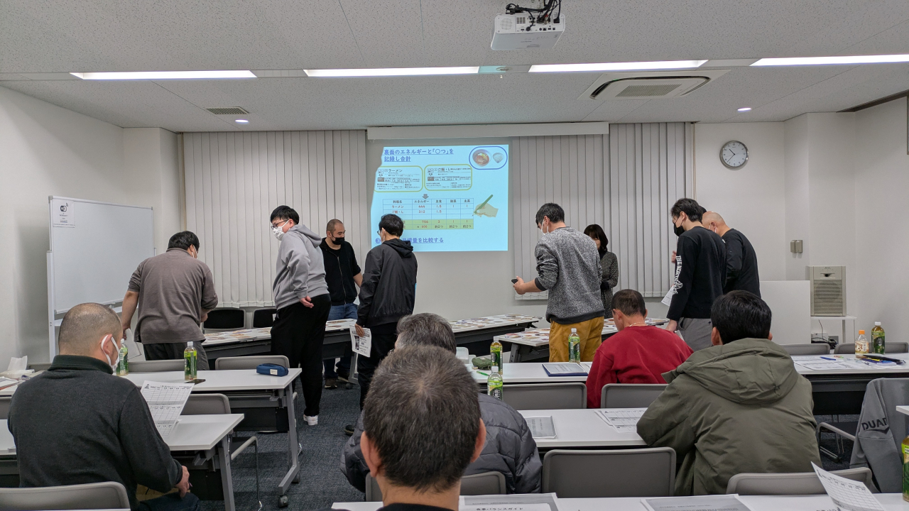 さっきまで“カロリー計算”や“栄養バランス”を真剣に学んでいた私たち。